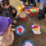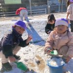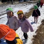 園庭や近隣に残った雪にみんな大はしゃぎでした!