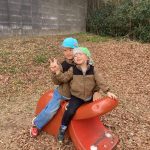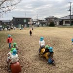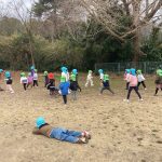 肌寒かったけれど、みんなで「だるまさんが転んだ」